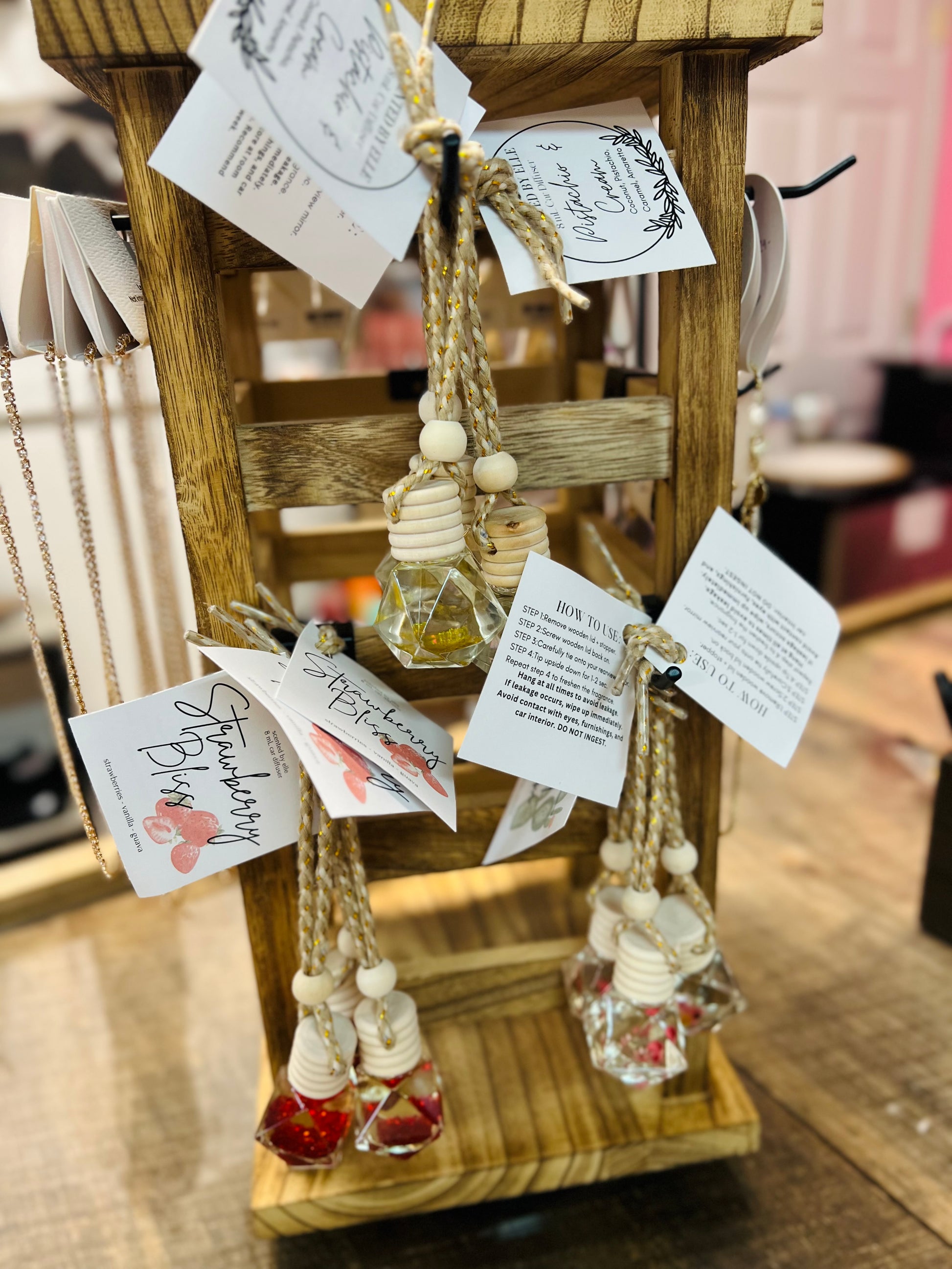 Unleash your inner luxury with our Charmed 8mL Car Diffuser. This chic glass bottle is both stylish and effortless to use. Just twist off the top, remove the stopper, replace the lid, and gently tip the bottle for 1-2 seconds before attaching it to your car mirror. Explore a variety of captivating scents and become a repeat diffuser lover - and gift giver - of this delightful car diffuser. Enhance your driving experience with a charming aroma.