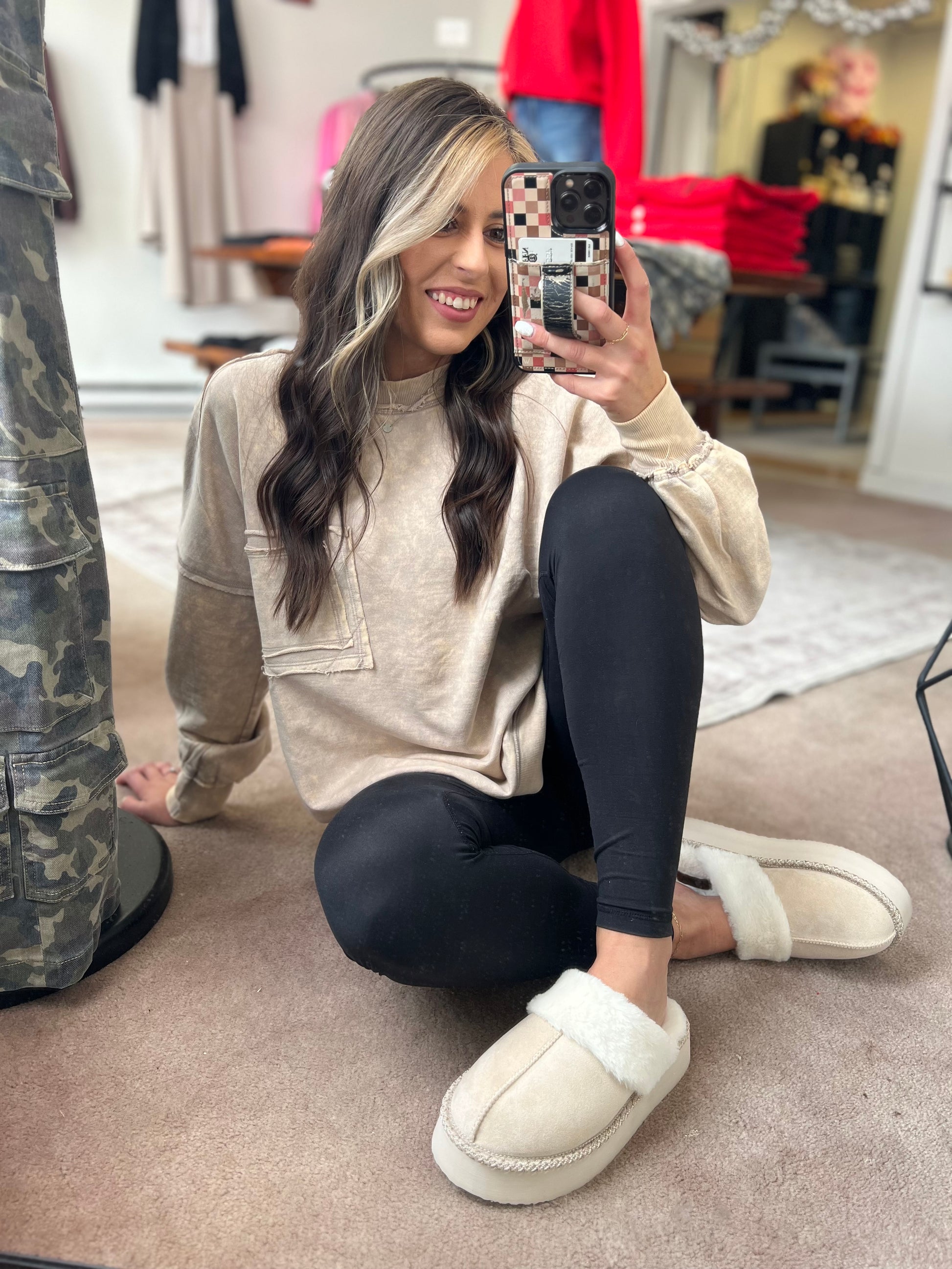Acid Wash Pullover w/Pocket, Ash Mocha
