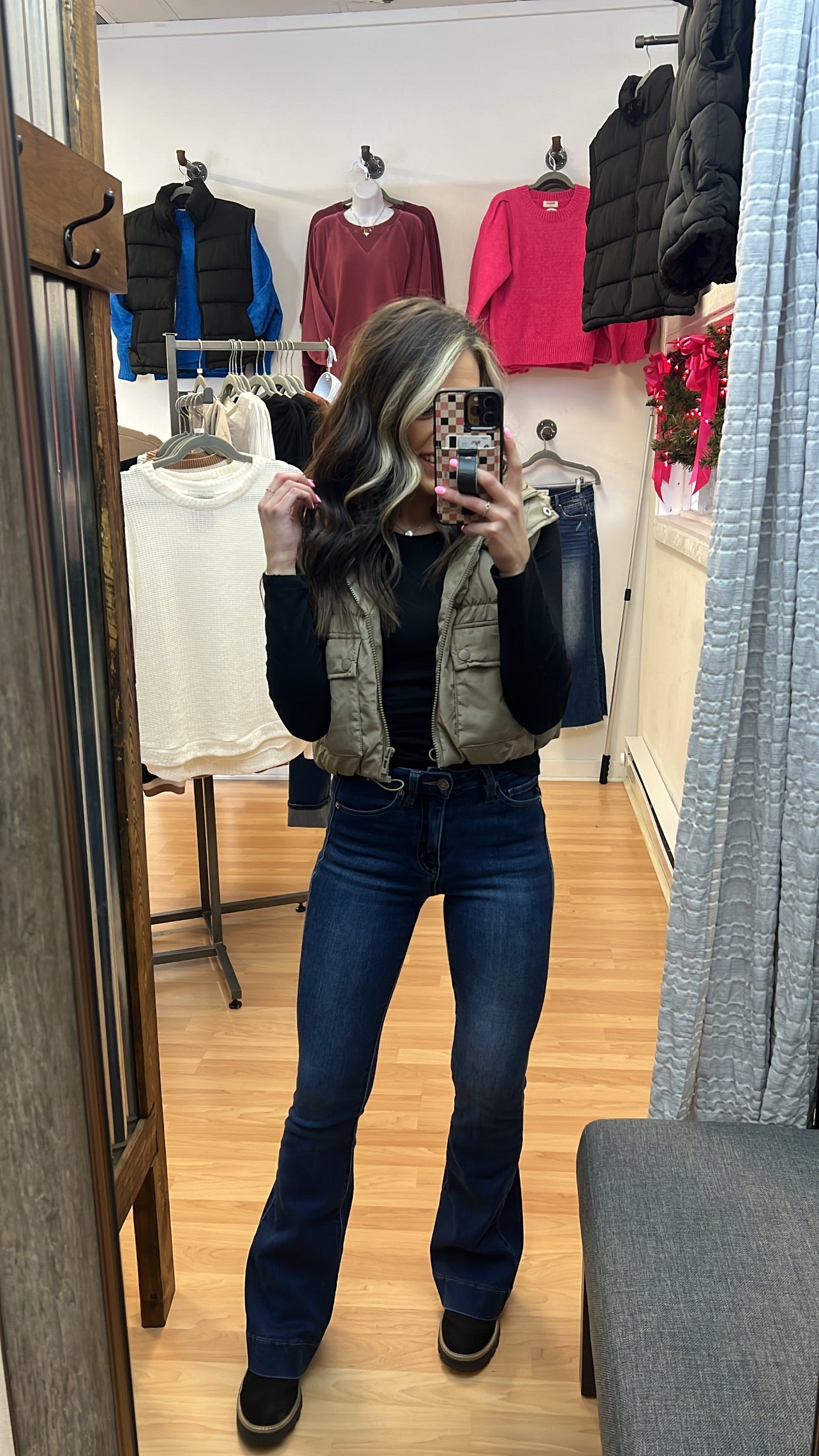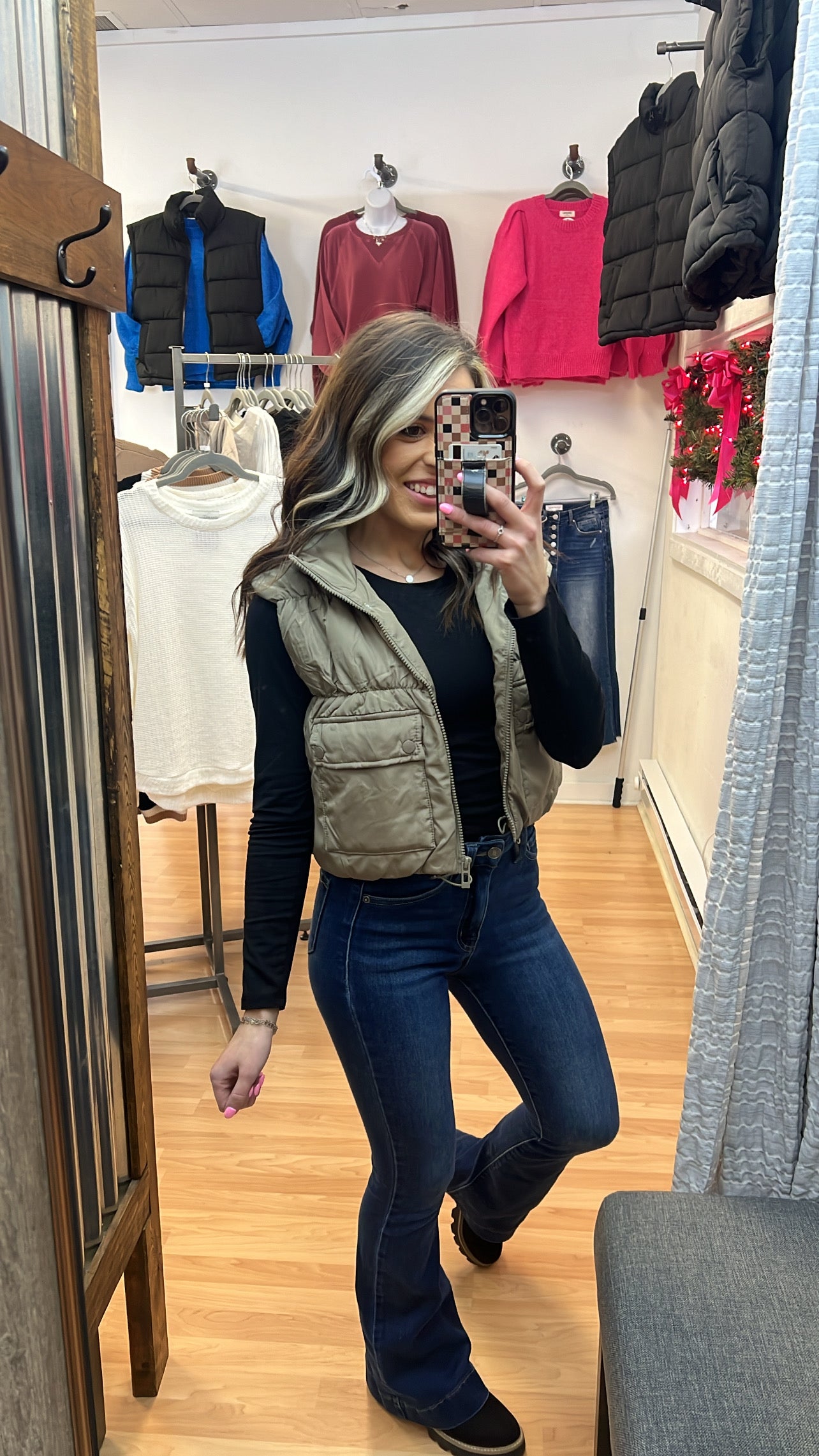 Keep warm and stylish with our Cropped Cargo Puffer Vest. Featuring a zip front with high collar and snap button closure, functional cargo-inspired pockets with snap buttons, and a modern cropped design, this vest is perfect for all your cold-weather outfits.