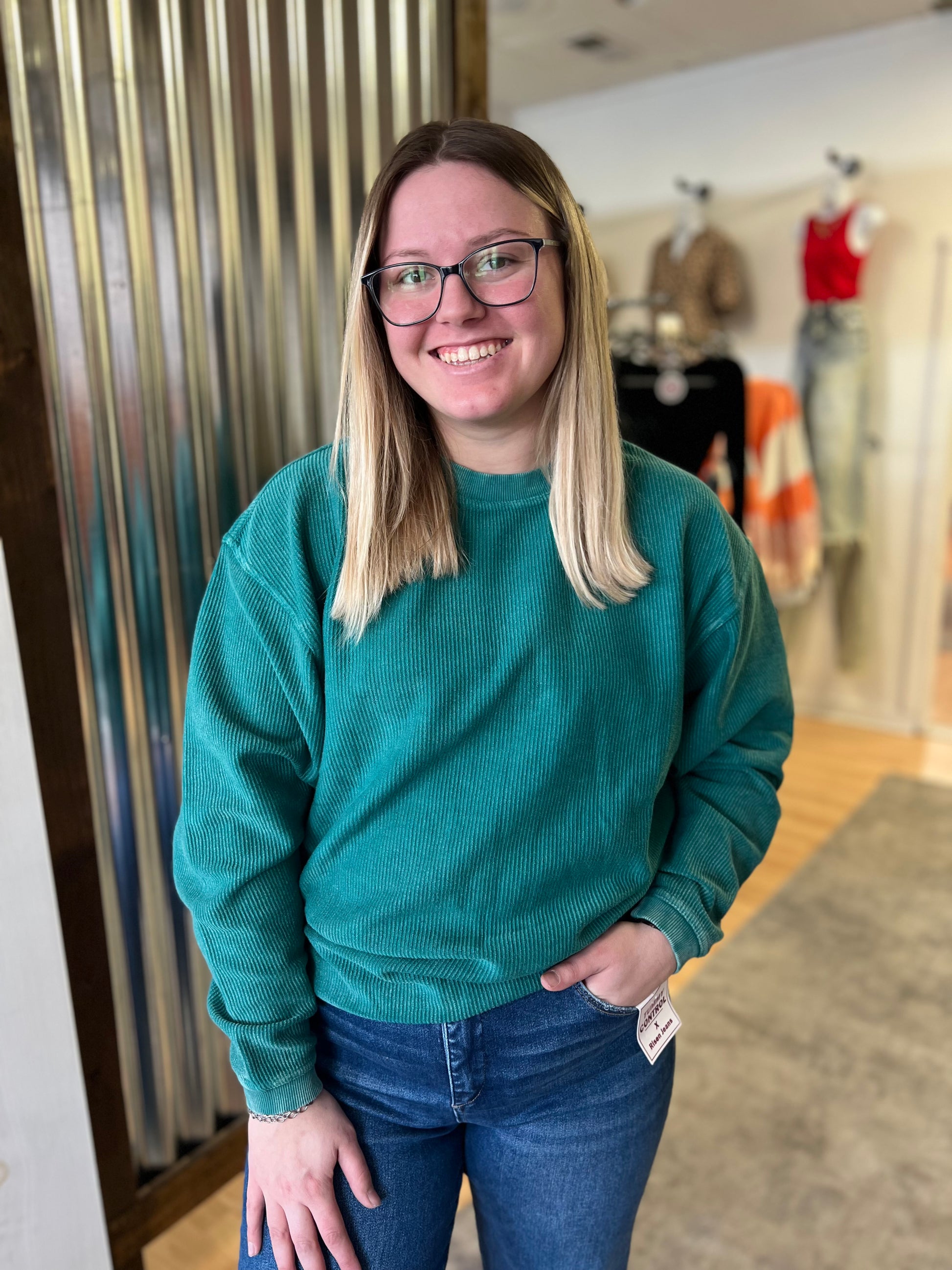 Experience luxurious comfort with our Luxe Corded Crew. This versatile piece can be worn throughout the year or layered for added warmth!