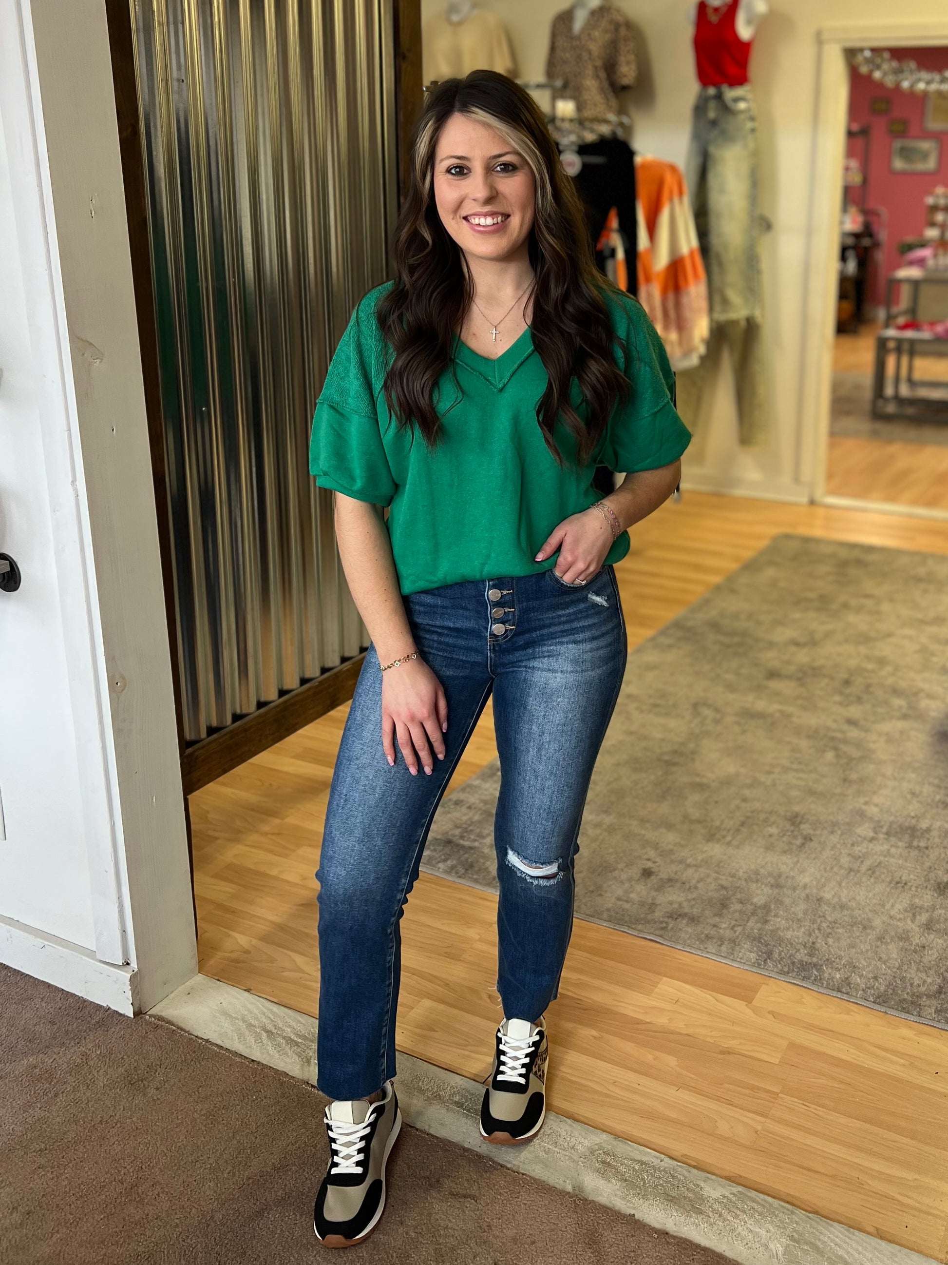 Modest V Neck Top, Green